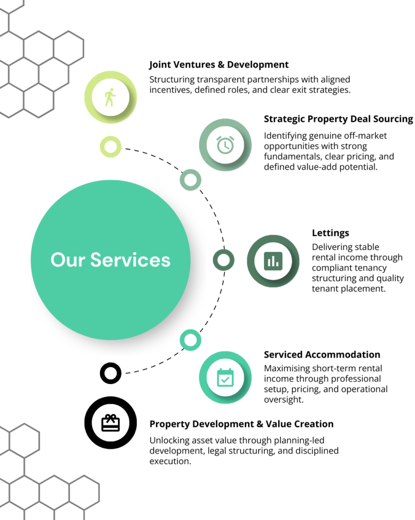 We specialise in property development projects where value is created through strategy, structure, and planning — not speculation.Our focus is on unlocking hidden potential in overlooked or underutilised assets through: